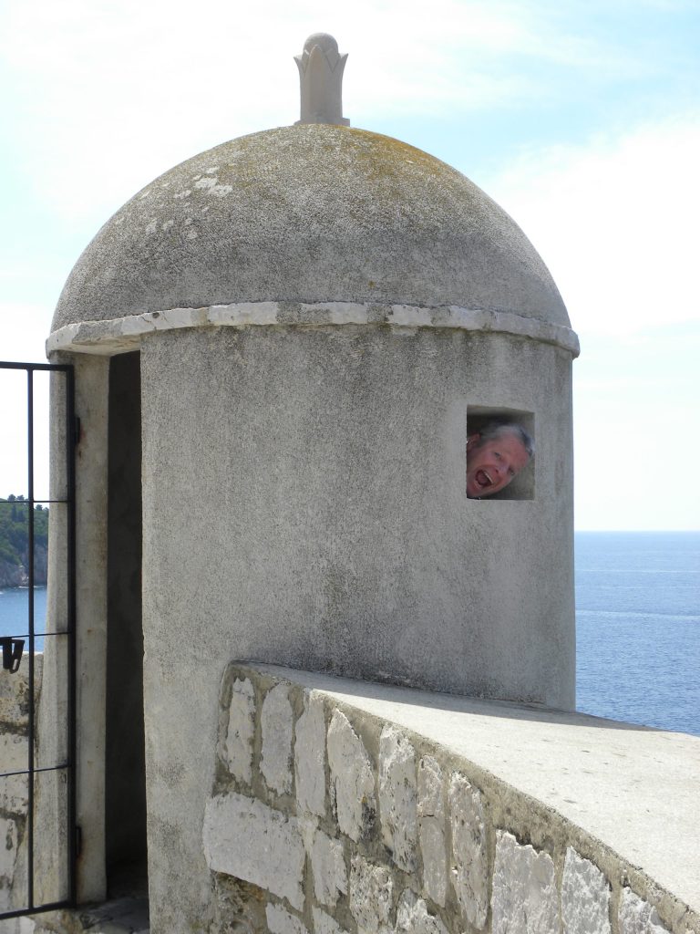 Back in Dubrovnik, we once again run the gauntlet of the endless walking tours for a final ‘Favorit’ beer at the Dubravka café, and at last a glass of decent wine that doesn’t taste like retsina. Here one can observe the sea- kayakers coming and going, and watch the pigeons irreverently nesting on a celebrity gargoyle of Saint Benedictine, whilst the local boys try to chat up the waitresses.