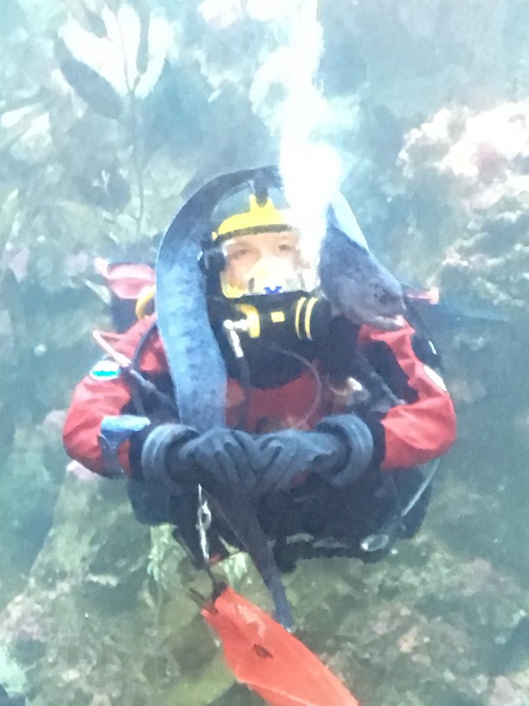 By comparison the iconic Space Needle looks like, well, a small needle. I had hoped to visit the renowned Seattle Art Museum (SAM) but it’s shut. Monday seems to be prime closing day in this city. I settle for a photo of the Hammering Man outside, and move on to the aquarium. This provides a great insight into what’s out in Puget Sound. The giant octopus are particularly fascinating, as are the huge 3-metre sturgeon. But the most intriguing exhibit was a diver with a moray eel round her neck explaining everything to school kids from underwater. Clever.